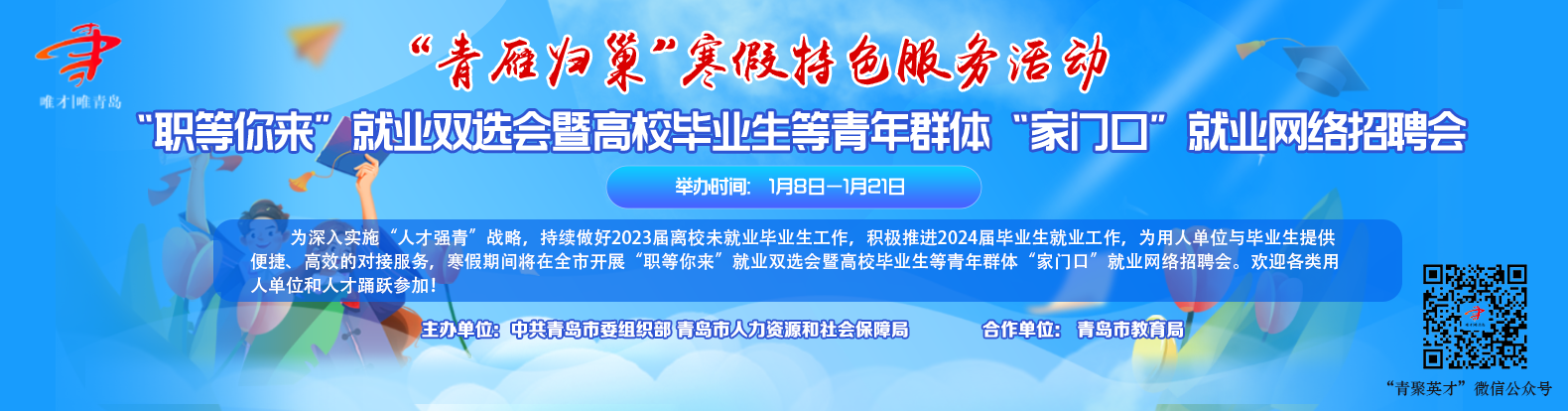 “青雁归巢”寒假特色服务活动——“职等你来”就业双选会暨高校毕业生等青年群体“家门口”就业网络招聘会